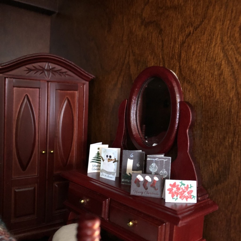 A very good friend of mine sent me the most amazing surprise! Miniature Christmas cards for my dollhouse display! Now, these are just the most detailed, gorgeous little cards… and in every single one of them, she wrote a greeting! Amazing, or what?