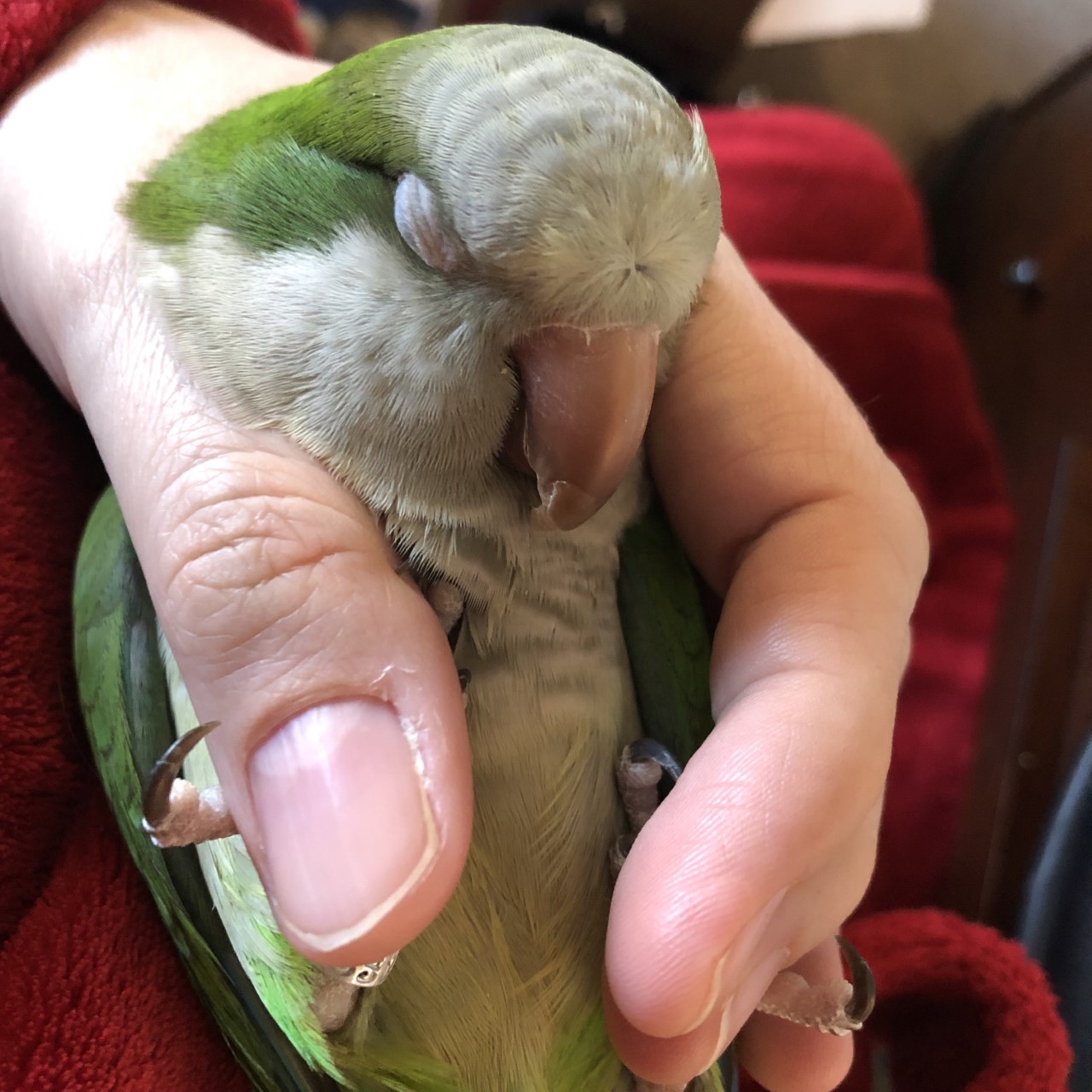 Pichu is our little Quaker Parrot, and we just adore him! He’s a little spitfire, though. Quakers are often referred to as little green dragons, and he lives up to the reputation. He’s noisy, and demanding, and full of shenanigans.