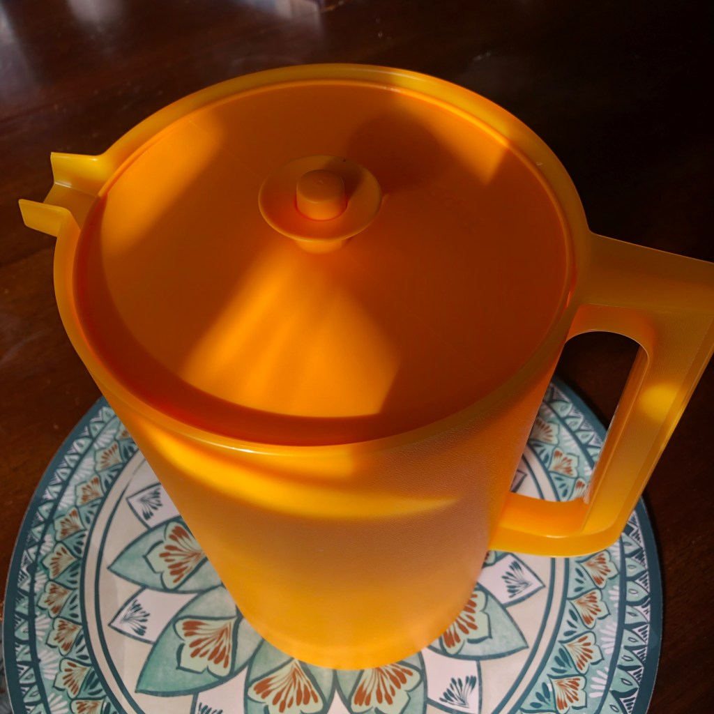 So I asked my mom where she got her Tupperware pitchers from all those years ago, and she said, “I had a friend named Sandra who sold it. She had a Tupperware party, and I went. They were good. They lasted a long time.”