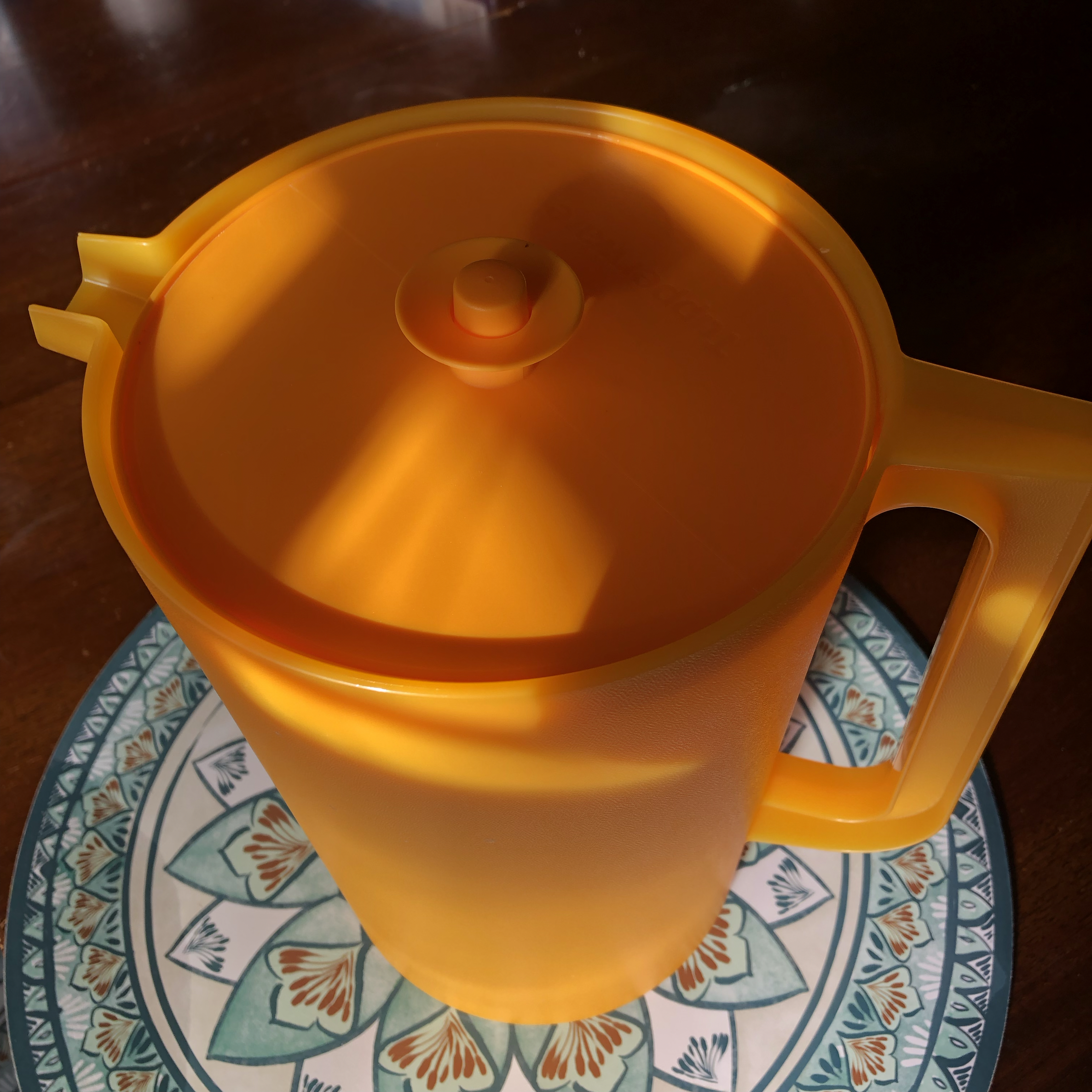 So when I was looking for a juice pitcher, and really not finding anything very good in my usual haunts, I stumbled across a booth at a small agricultural fair where a woman was selling Tupperware. And I found a juice pitcher almost exactly like the one we had when I was a kid.