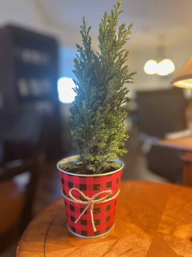 So this year, I was grocery shopping and found this little tree. It’s tiny. It’s cute. It’s hopefully more hearty!