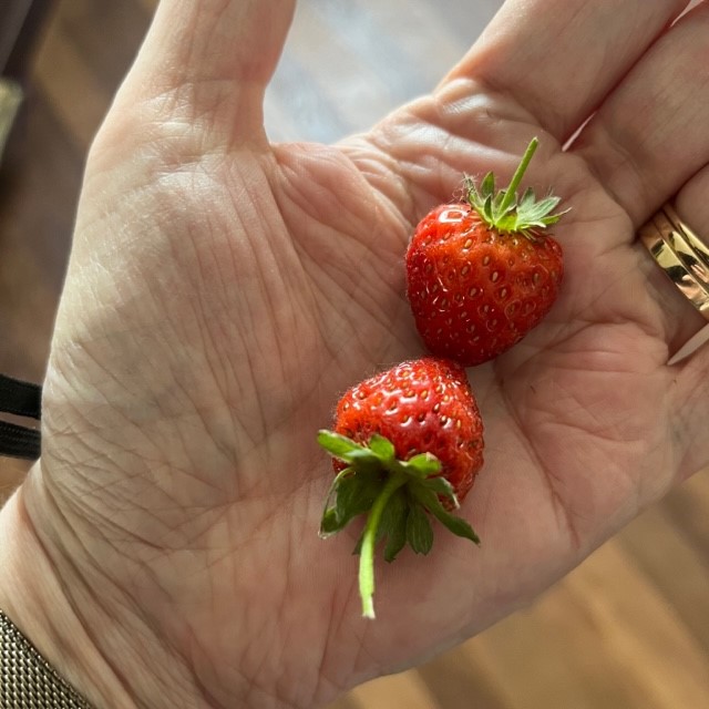 My family likes having some color out there, but they don’t really care about the flowers. Or the strawberries. They’re mine.