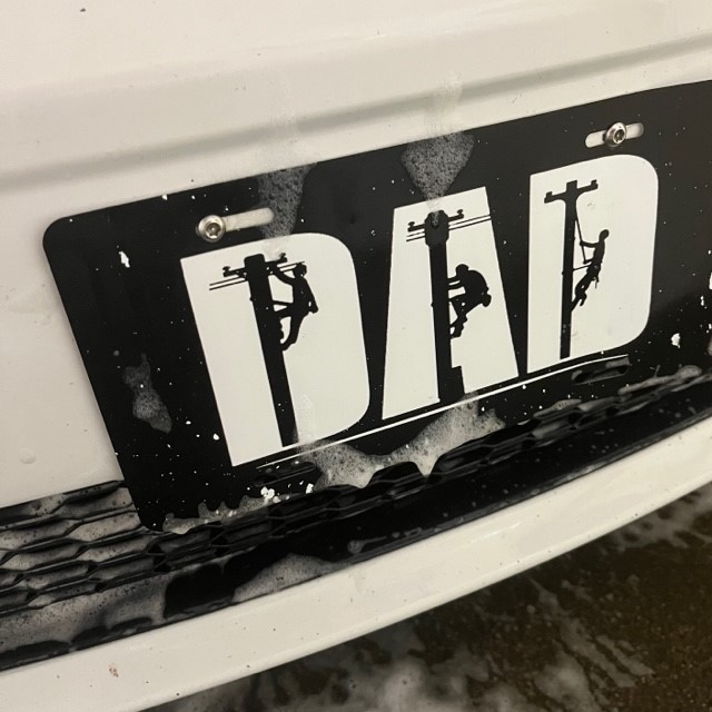 The other day, I was helping my husband wash his work van, and I snapped a picture of this license plate thingy we got him a few years ago for his birthday.