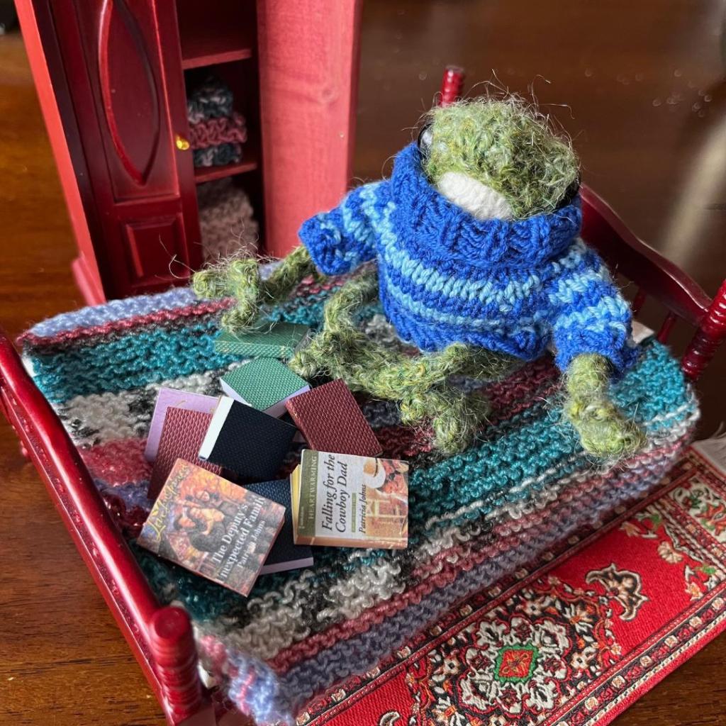 I hope you’ve been enjoying the tale of these newlyweds! I sure enjoy playing with my knitted frogs.