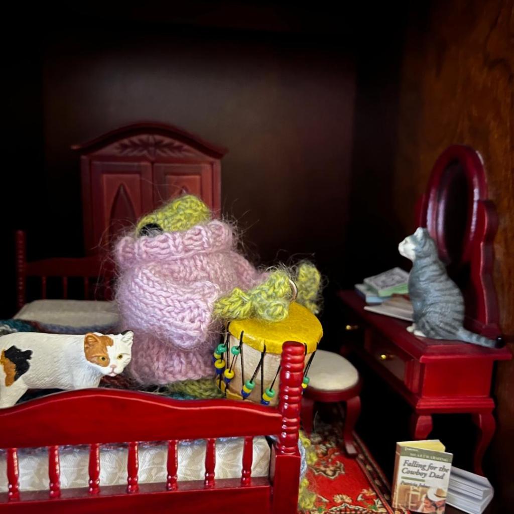Amelia’s grandfather was an African Bullfrog. The drums had been a very important part of her ancestry, and one day Amelia pulled out the drum her grandfather had sent to her when she was just a tadpole, and she tried her hand at drumming.