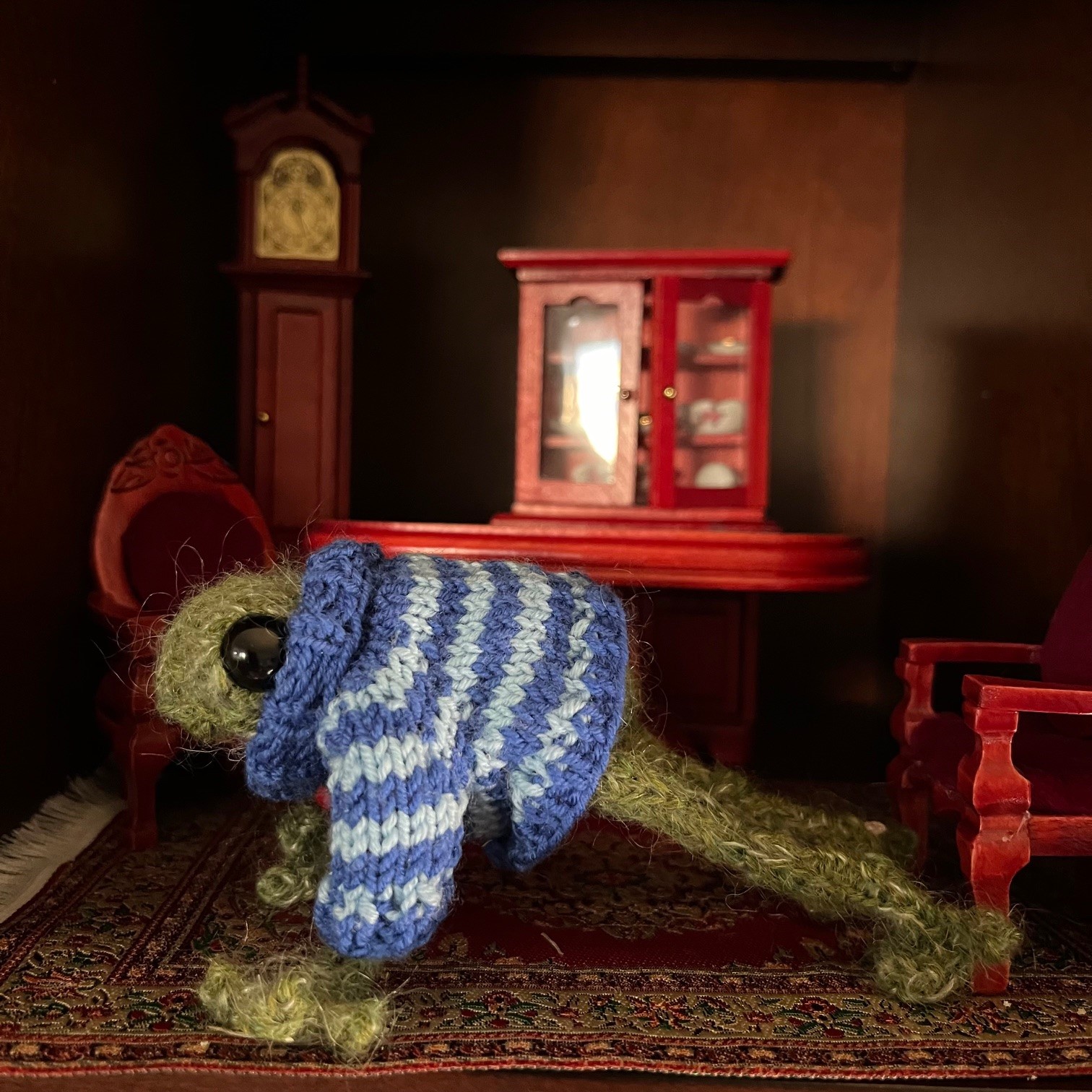 Amelia’s grandfather was an African Bullfrog. The drums had been a very important part of her ancestry, and one day Amelia pulled out the drum her grandfather had sent to her when she was just a tadpole, and she tried her hand at drumming.