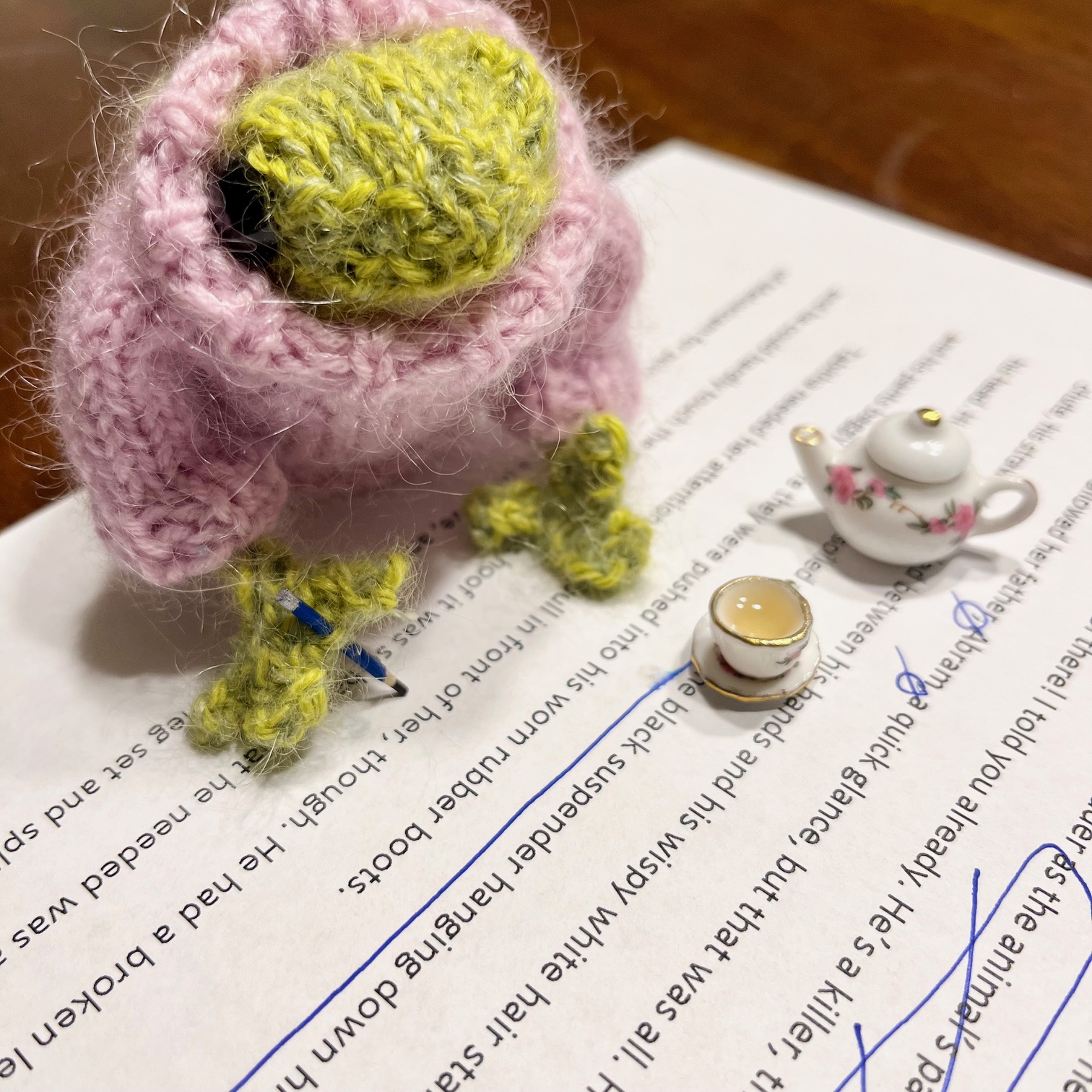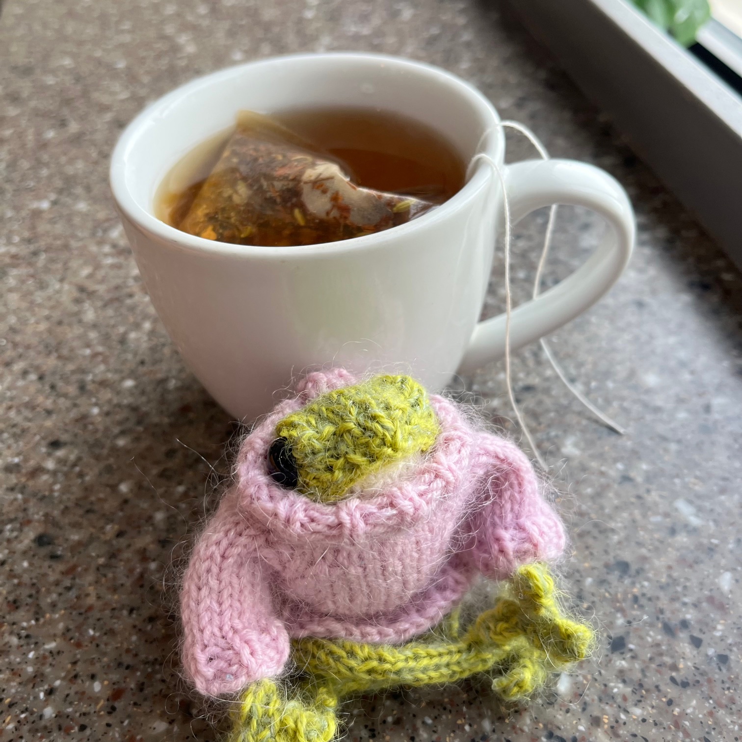 I hope you are enjoying the Knitted Newlyweds. Sometimes I wonder what people must think of me when I’m setting my frogs up for their photos… It might be better not to know. 😉