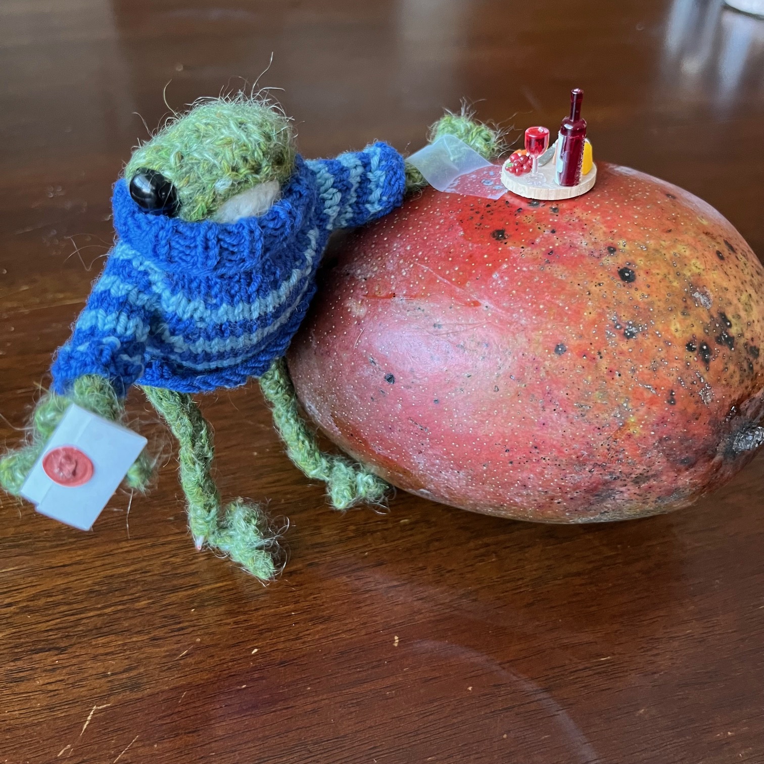 He stood downstairs with a love letter in hand, some sparkling grape juice and cheese prepared, and with the biggest mango he could find and have delivered. He’d had to get Patricia Johns to accept the delivery for him because it was too big for him to carry alone. Patricia was only too happy to help, but she’d left it on the Johns’s kitchen table below.