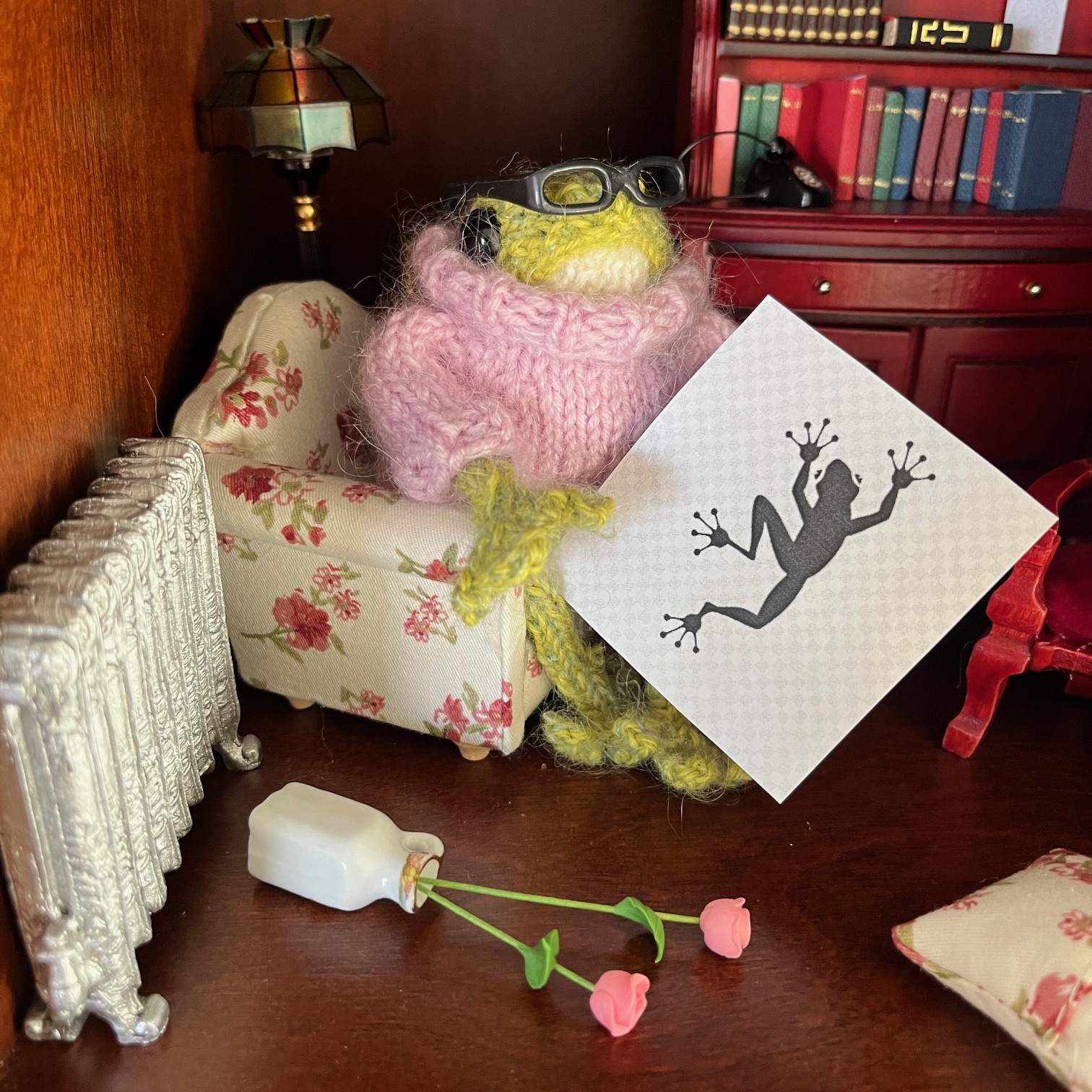 “My readers are wanting a frog bookmark,” Patricia said. “I’m having trouble finding a silhouette that will both be recognizable as a frog, and easy enough for me cut out of a book page.”