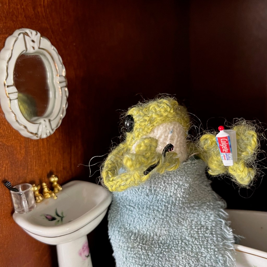 That evening, back at home, Amelia brushed her teeth before getting ready for bed.