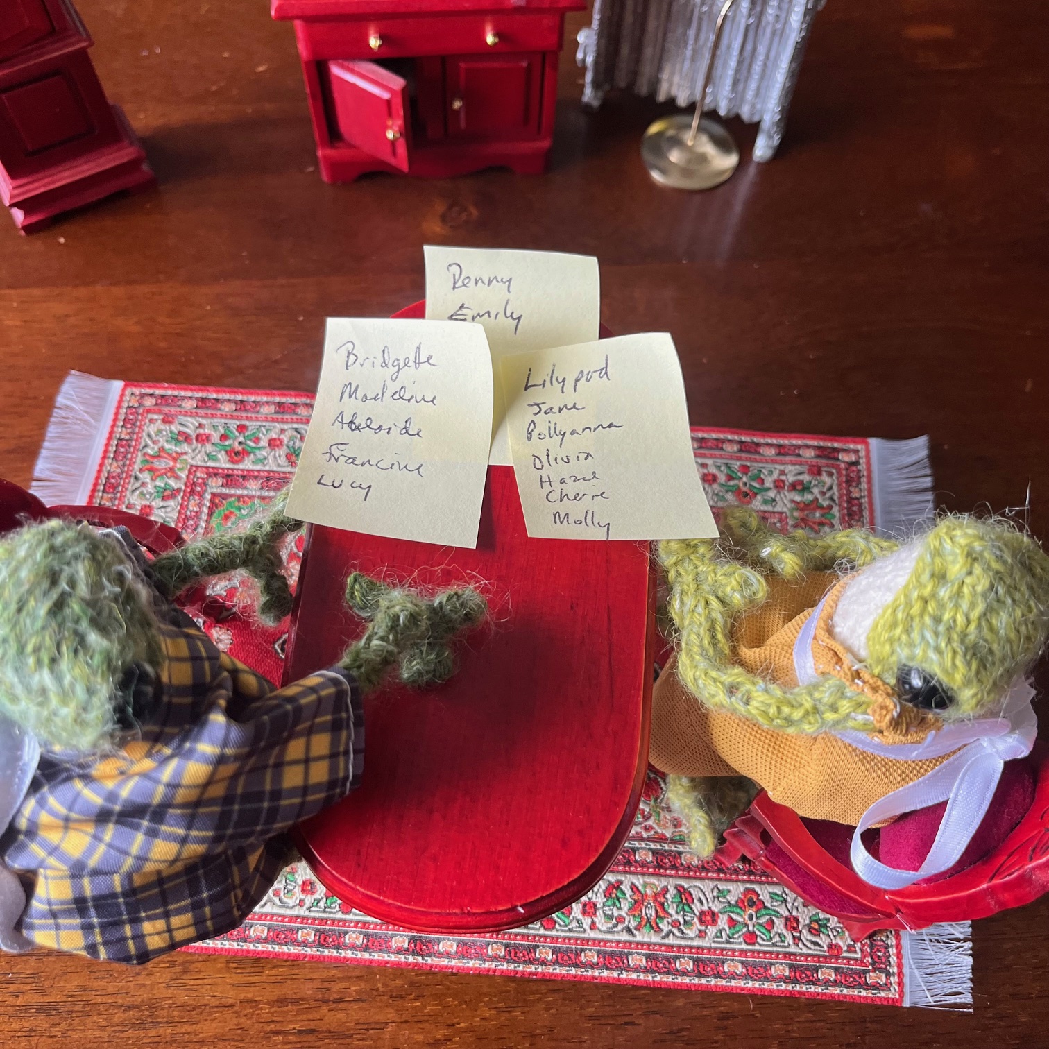 The next day, they put the list of names on the dining room table and looked at them. George pointed at one name on that list, and Amelia smiled.