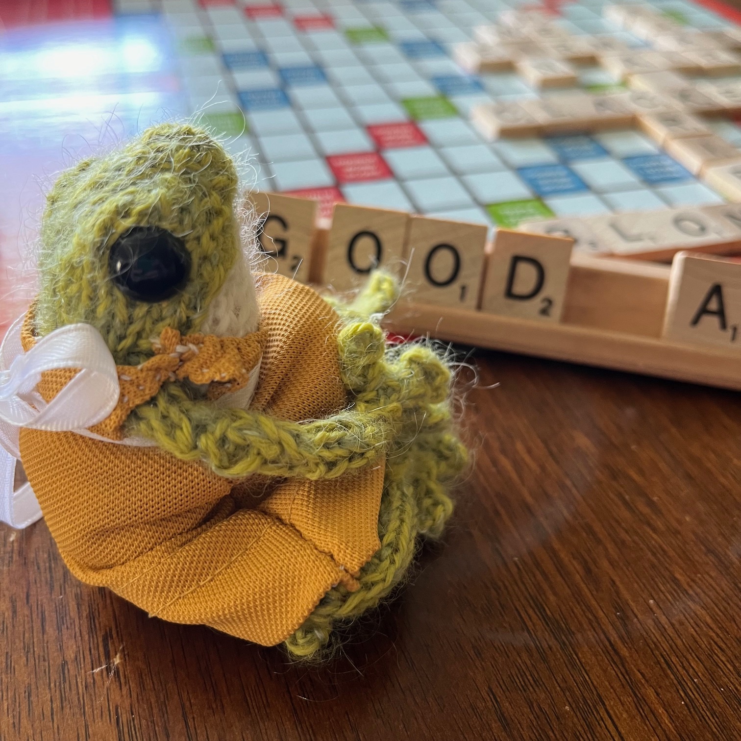 George, on the other hand, was obsessed with points. He’d use words like “zap,” “quiz,” “ji,” “fa,” “quay.” Really, once you gave that frog a Q or a Z, he would find a triple word score somewhere and rack up those points!