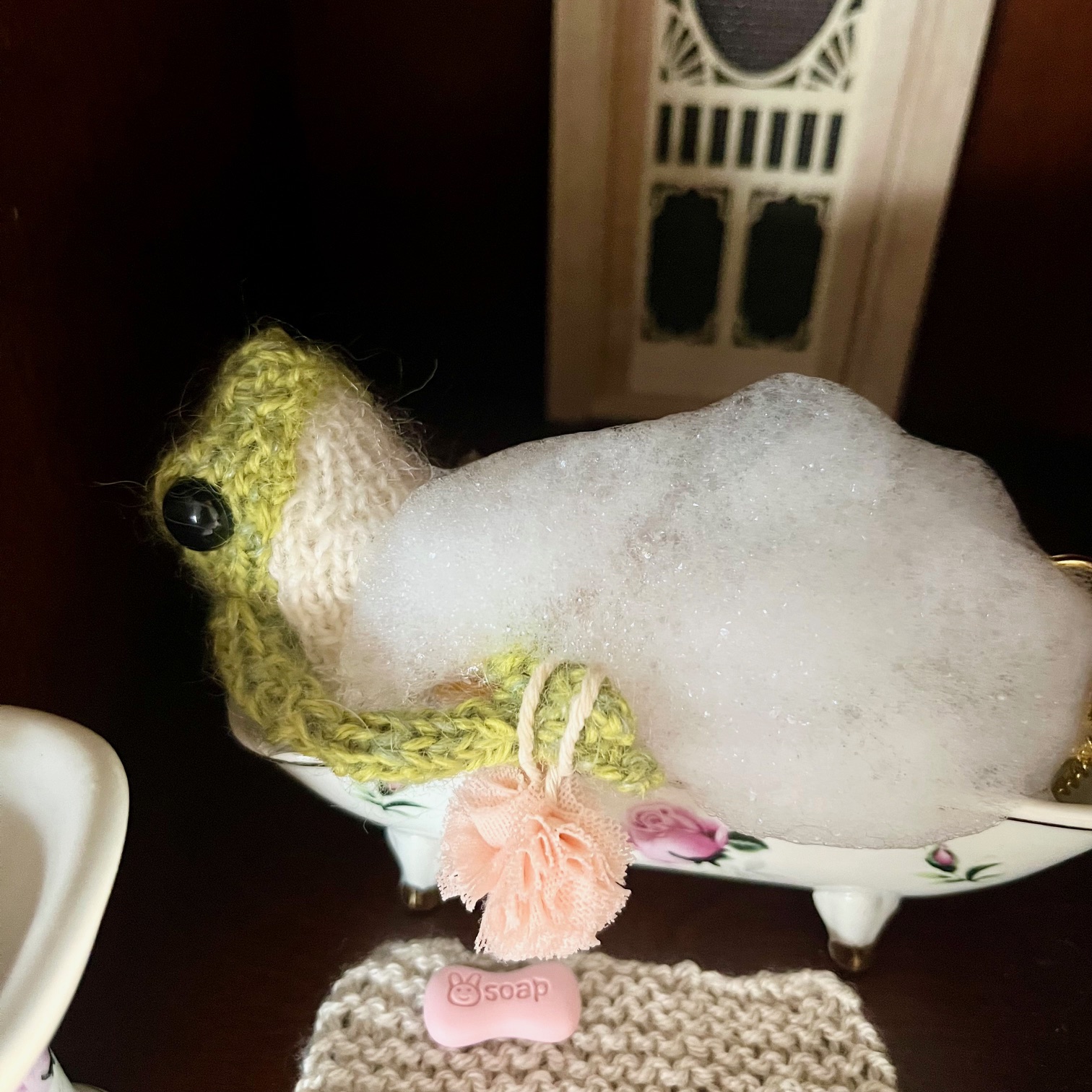 I hope you’re enjoying these Knitted Newlywed stories. I have so much fun putting them together… and buying the miniatures to go with them.