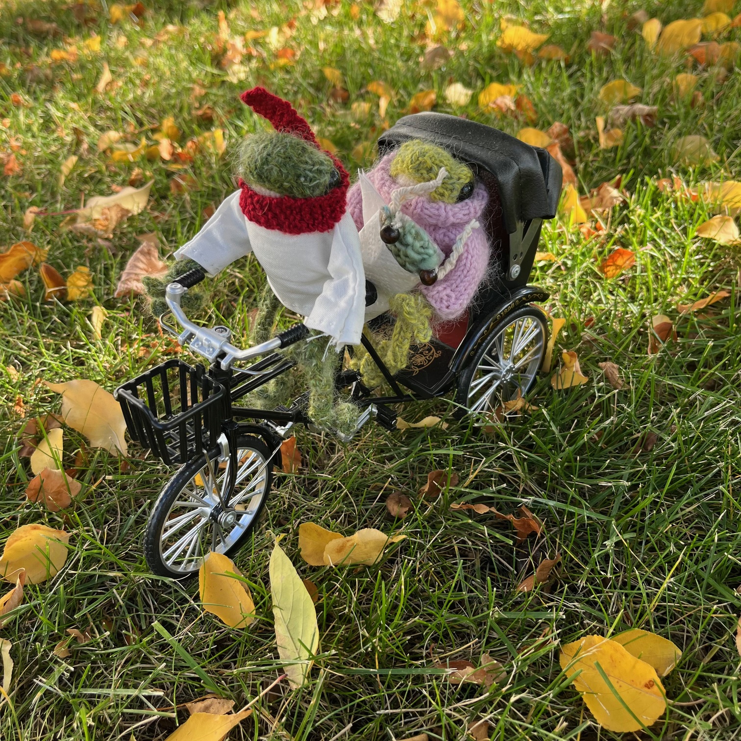 So they bundled up their pollywog in a blanket, and they went out for a crisp, meandering bike ride in the autumn leaves. George was the one to pedal–this was a man’s responsibility, after all. And Amelia held Brigette in the little seat in the back.
