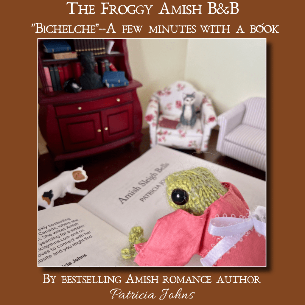 “Come have a seat, and I’ll put on some tea,” Amelia said. “We can chat for a few minutes before you go. Can I ask what brought you to the Froggy Amish B&B?”