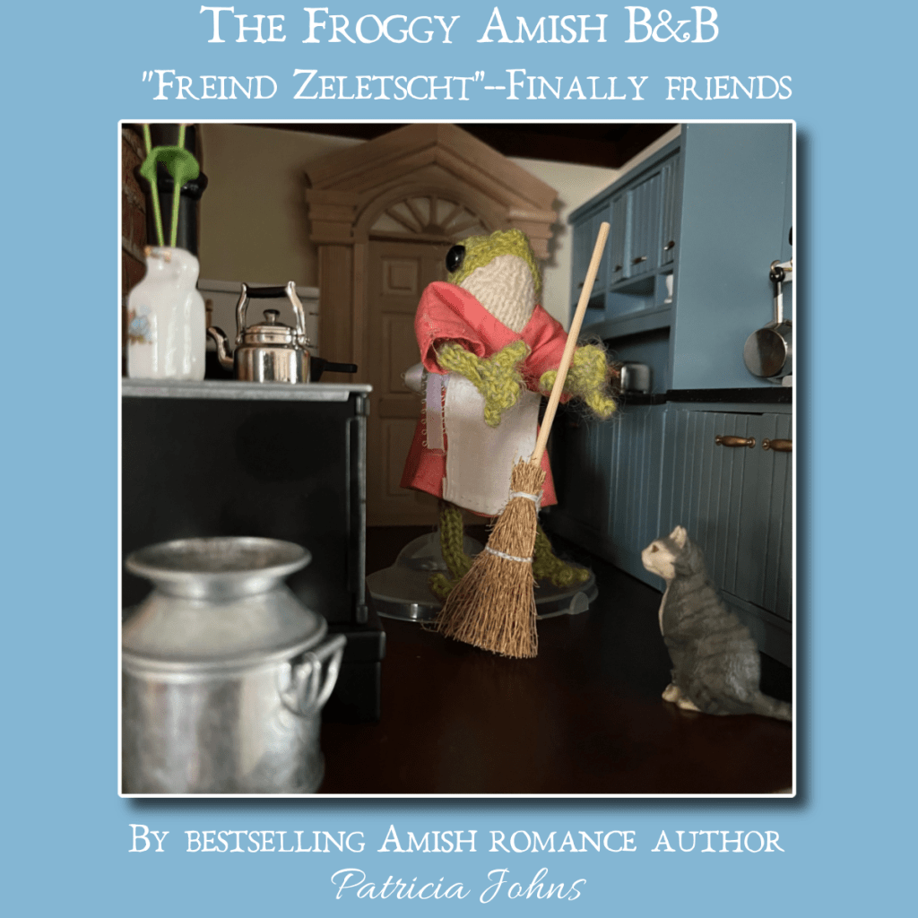 The next morning, Amelia hummed to herself as she swept the kitchen. George had taken Amelia outside to see the cows, and Amelia was enjoying a little bit of quiet by herself. She wasn’t getting a lot of quiet these days–even without TV! The Froggy Amish B&B was a very busy place.