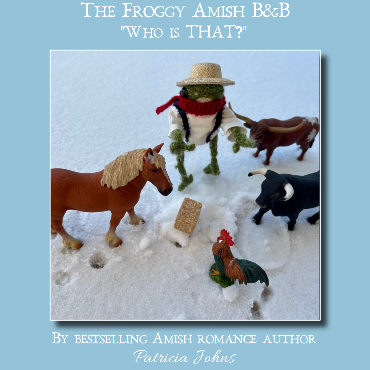 Mary Lapp was Amelia’s Amish neighbor, and she and Amelia sat at the kitchen table with a plate of cookies between them and a cup of coffee each. Outside Mary’s kitchen window, Amelia could see their pasture and the snowfrog they’d built. Standing next to the snowfrog was Ronnie the rooster, looking a little confused and rather lonesome. It was enough to break a frog’s heart!