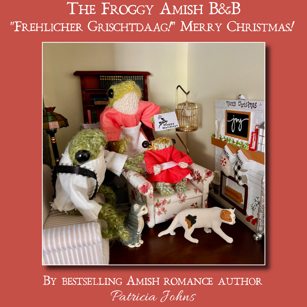 George and Amelia Frog settled into their Amish B&B home to celebrate Christmas. Christmas in Amish Country had two days–Christmas Day, and the day right after Christmas Day called Second Christmas, because there was too much Christmas to fit into just one day.