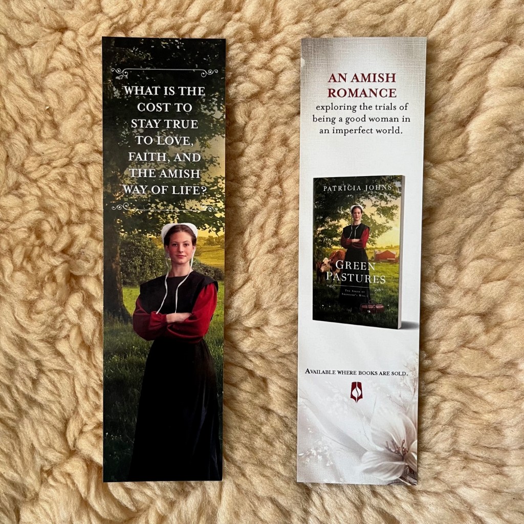 Bethany House, the publisher for my upcoming release, Green Pastures, sent me these beautiful bookmarks that I can give away to readers! I love that they’re providing goodies for me and these bookmarks are just so pretty.