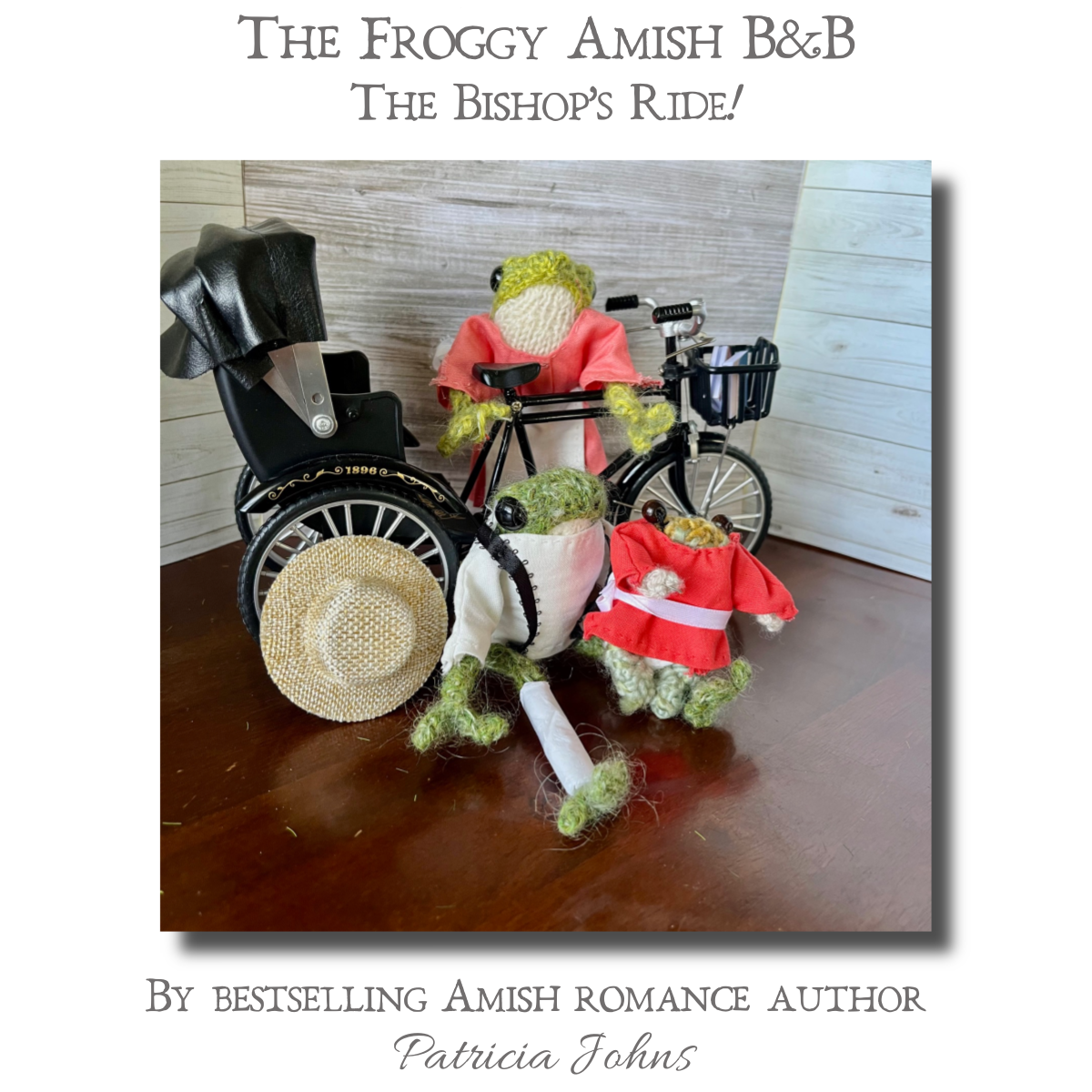 So George, Amelia and little Brigette got into their bicycle built for three. Amelia had to pedal because of George’s broken leg, but she didn’t mind. They headed down the gravel road in the direction that Bryce had gone. And soon enough, they spotted Bryce on the way back down the road with Brenda on the seat behind him, her kapp strings fluttering out behind her.