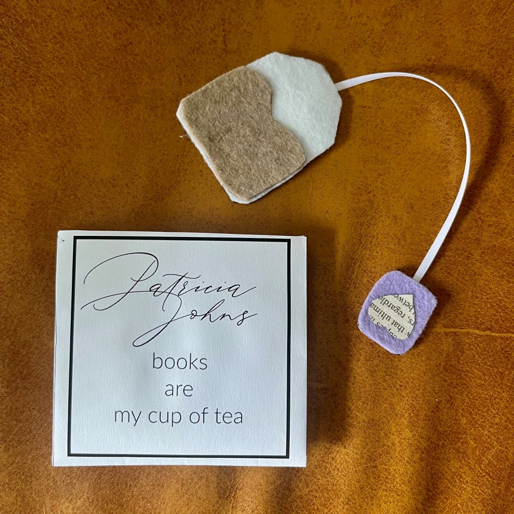 So I decided upon teabags! Aren’t they adorable? There are three of them, and they each come with a little teabag envelope that says “Patricia Johns books are my cup of tea.”