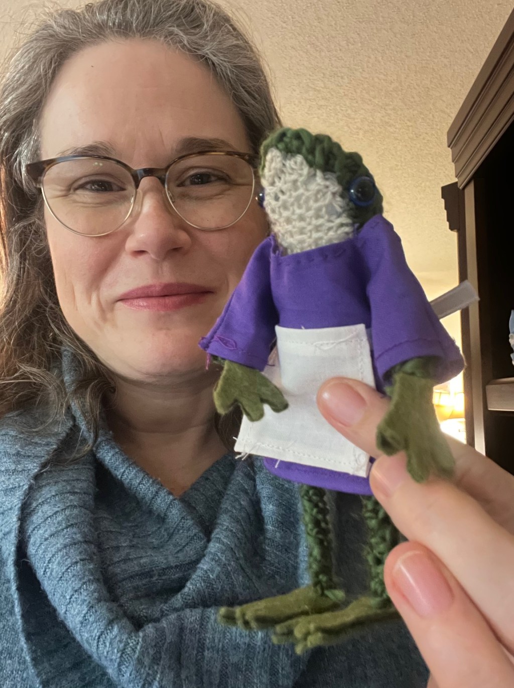 What does an author do when she’s taking a break from writing over the holidays? Apparently, she clothes a knitted frog!